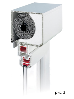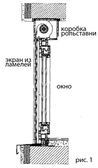 Торцы ламелей удерживаются боковыми направляющими. На рисунке 1 показано сечение оконного проёма с установленными защитными ролетами (в данном случае – специальная система для выполнения металлопластикового окна сразу с защитными ролетами).